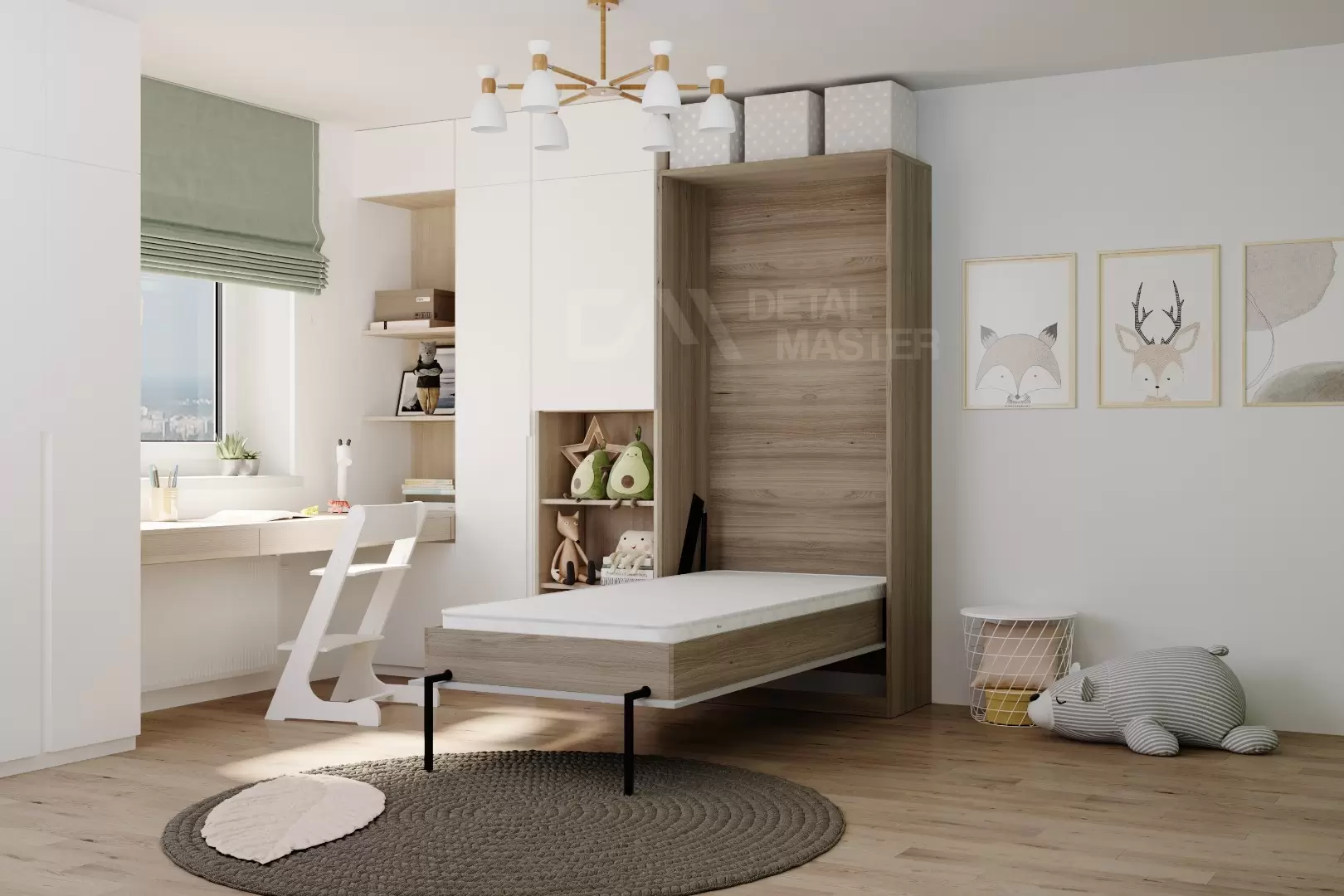 Детская шкаф-кровать "Flip Bed Start" работает на механизме раскладывания собственной разработки "Start". Кровать раскладывается легким движением руки, превращаясь в полноценное спальное место. Просто потяните ее за ручки, расположенные на фасаде и выставите ножки-опоры.