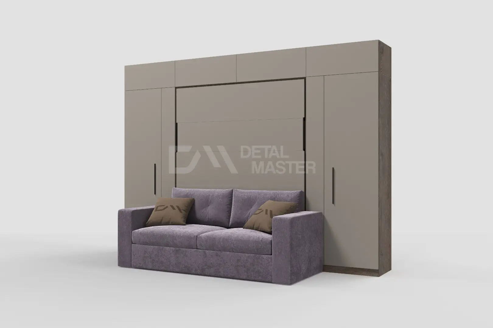 Шкаф-кровать трансформер с диваном "Deluxe platinum Balance" работает на механизме раскладывания собственной разработки "Balance". Кровать раскладывается легким движением руки, превращаясь в полноценное спальное место. Просто потяните за ножку-маятник, которая самостоятельно фиксируется в нужное положение при опускании.